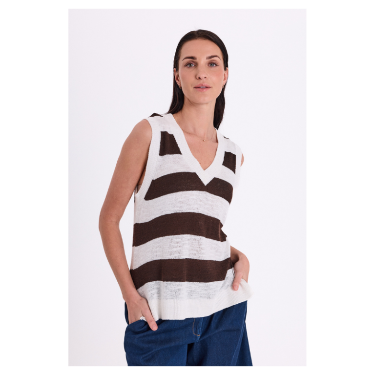 VICKI WAISTCOAT – WHITE/BROWN