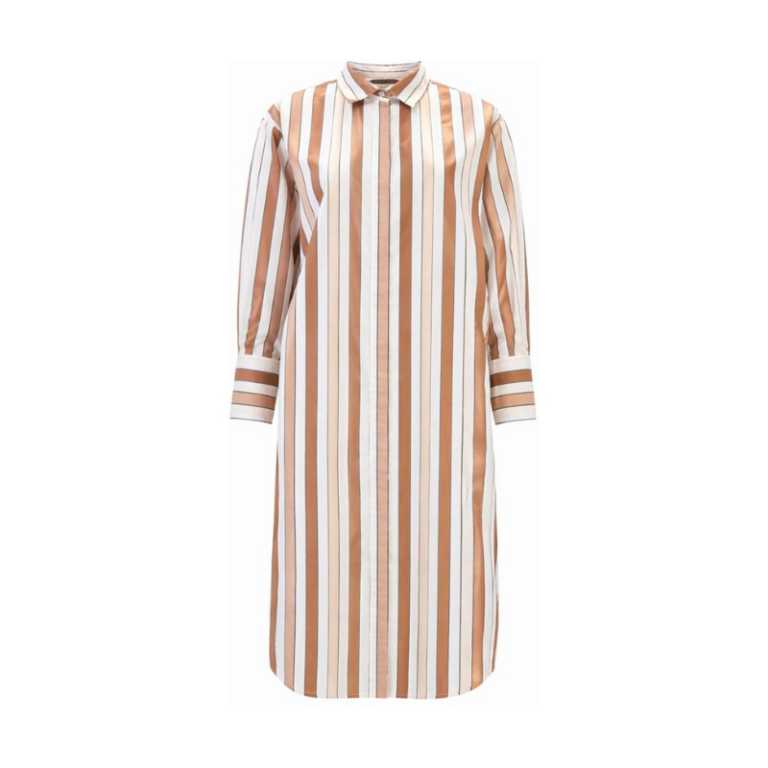 Style: 2604138-Towel Long Shirt Elegant skjortekjole i let og behagelig kvalitet med klassiske, striber. Modellen har krave, gennemgående knaplukning og lange ærmer der kan bindes op, samt manchetter. Den løse pasform og afrundede kant giver et afslappet, men stilrent look - perfekt både alene som kjole eller stylet over bukser. Materiale: 100%cot Pasform størrelse M: Brystmål: 130 cm Ærmelængde: 65 cm Hvis du har yderligere spørgsmål til de nævnte mål, men på andre størrelser, så er du velkommen til at kontakte os. Vaskeanvisning: For at beskytte skjorte kjolen, anbefaler vi at den vaskes på 30 grader. Fra XS til XXL