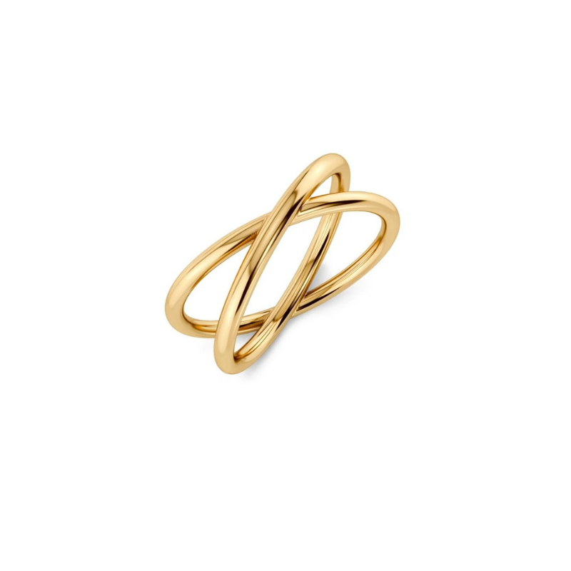 Alexa er en stærk serie med et rent og elegant skulpturelt design med dele, der skiller sig ud. Perfekt til layering og stacking til både hverdag og fest. Her ses Alexa-seriens tyndere ring i en 14K guldbelægning med en smuk X-form, der sidder flot på fingeren. Kombinér gerne med seriens armbånd, halskæde eller øreringe.