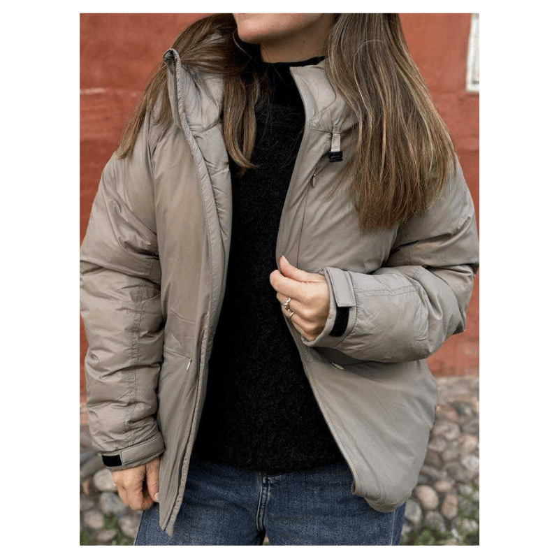 Jakke i 100% Nylon Ripstop med Sorona Padding og vandafvisende egenskaber. Udstyret med hætte, tre udvendige lommer og en indvendig lomme.