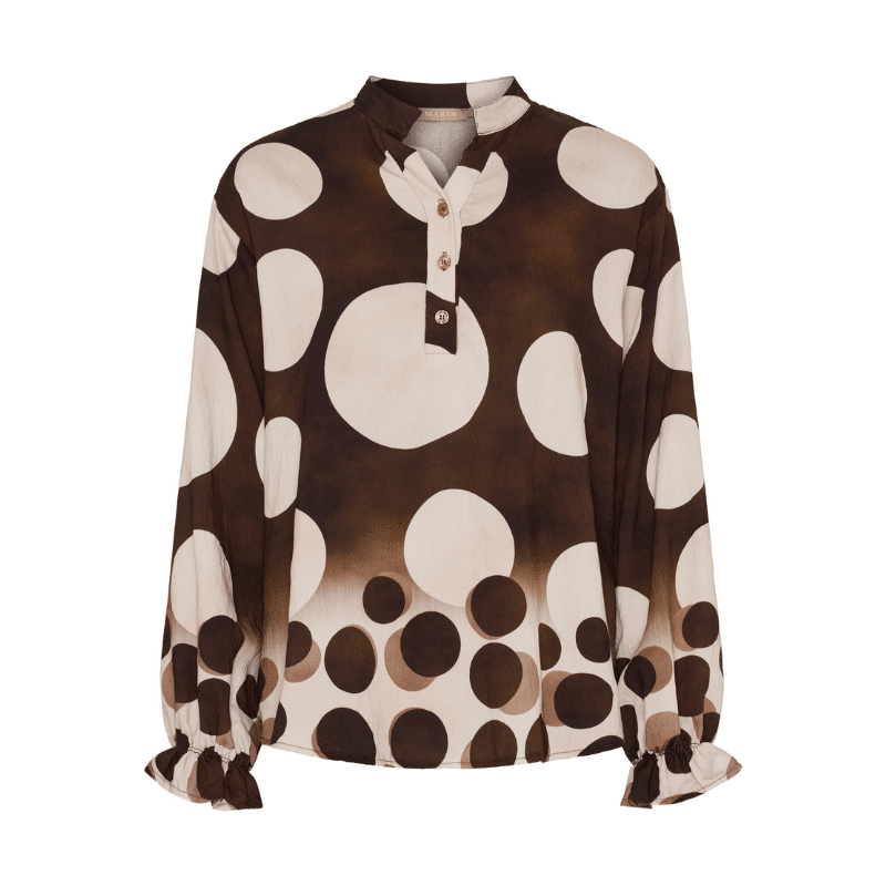 Mdc Aspen skjorte fra Marta du Chateau. En smuk skjorte med et grafisk udtryk med prikker. Findes i brun og bordeaux.