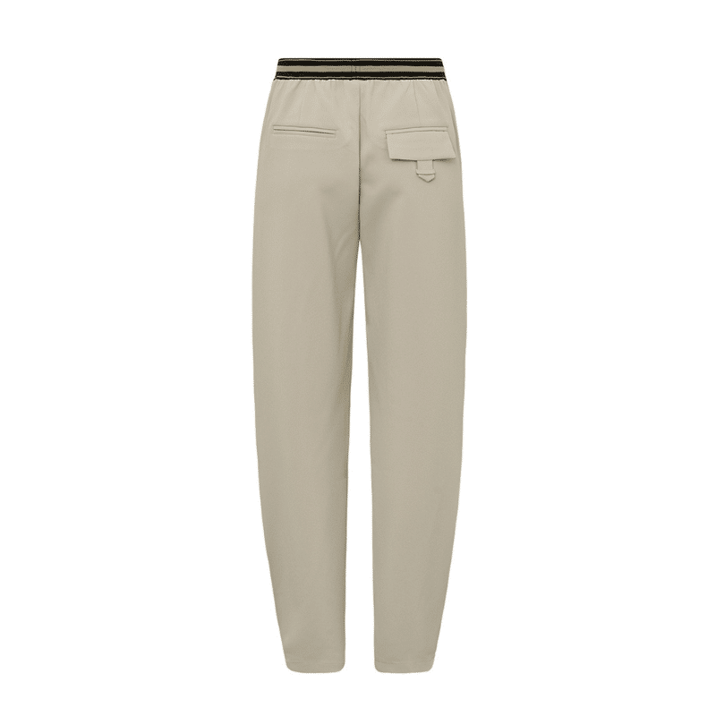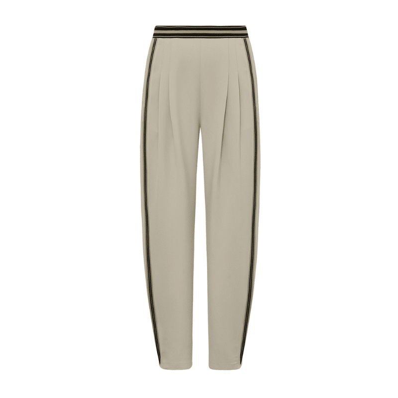 Atalie TabiaGO buks i farven sand fra Gossia. Super fed sand-farvet buks med en afslappet pasform og et sporty look. Denne buks har elastik i taljen med en stribet kant. Buksen har også en stribet kant ned langs benene, som giver et sporty look. Buksen er designet med små læg øverst ved taljen, hvilket er med til at give en flot pasform. Bukserne har en lidt løsere pasform i lårene, der taper ind mod anklerne.