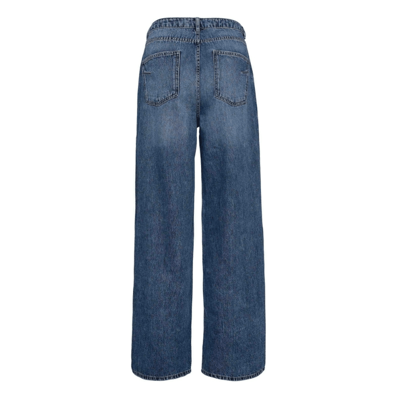 Smuk highwaist jeans i en flot blå vask med elegant vidde i benene. En tidløs pasform, der kombinerer komfort med et stilfuldt og moderne udtryk.