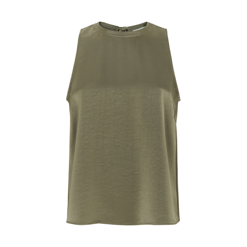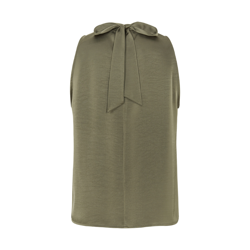 En smuk og elegant top uden ærmer. Toppen har rund hals og en fin bindebånds detalje bag på. Fås i flere farver.