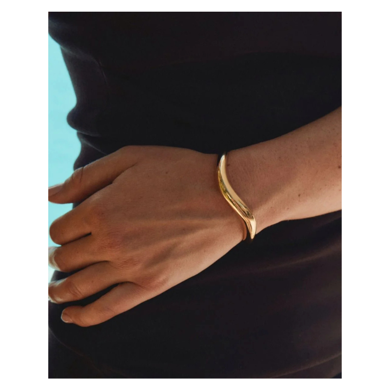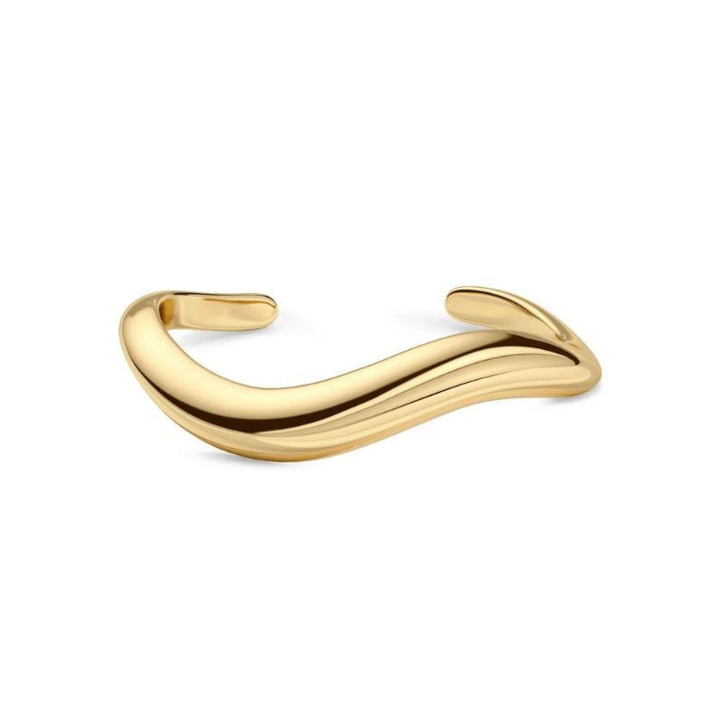 Smuk bangle i en 14K guldbelægning med en smuk organisk form, der smyger sig pænt om håndleddet. Match gerne med Azura seriens øreringe, halskæde eller ring. Fås også i sølv.