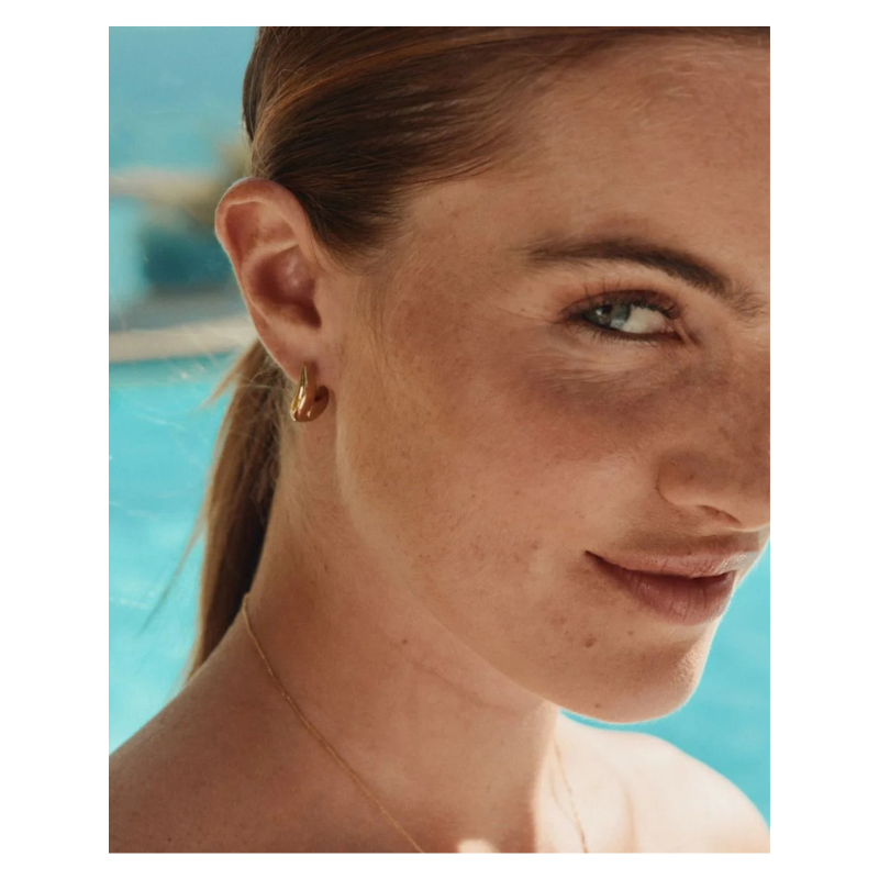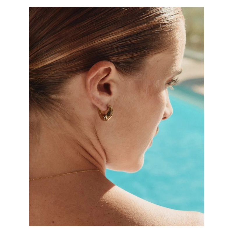 Skønne små hoops i en 14K guldbelægning; de smyger sig om øreflippen og er lige så smukke forfra som bagfra. Match gerne med Azura seriens bangle, halskæde eller ring. Fås også i sølv.
