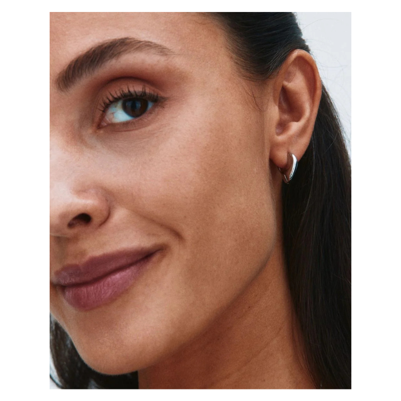 Et par skønne små hoops i blankt rustfrit stål; de smyger sig om øreflippen og er lige så smukke forfra som bagfra. Match gerne med Azura seriens bangle, halskæde eller ring. Fås også i guld.