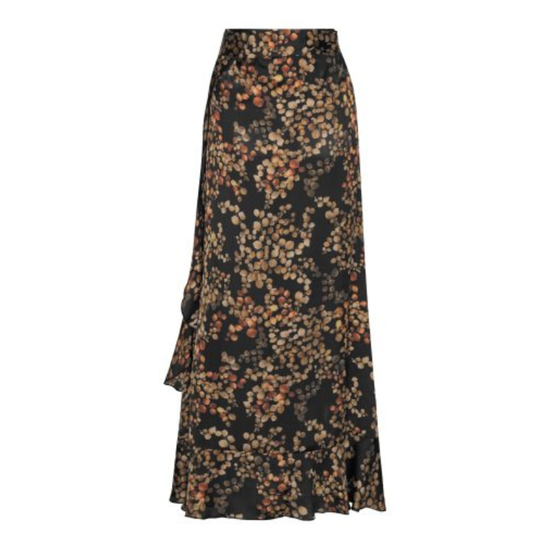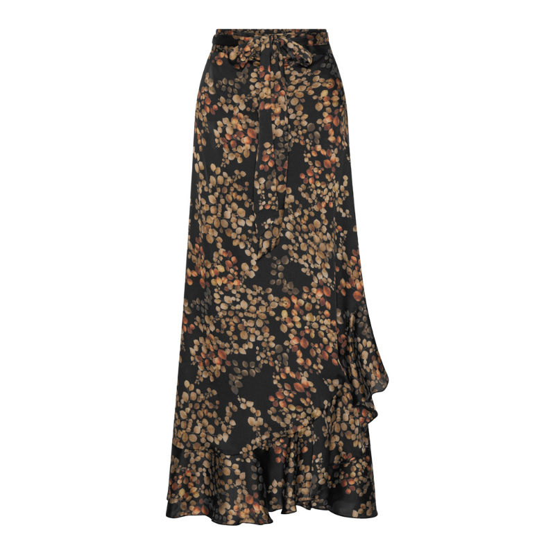 Elegant justerbar slå-om-nederdel med flæsekant. Til både dag- og aftenbrug.