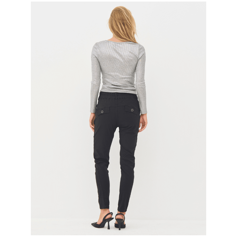 Giv dit outfit et strejf af glamour med denne elegante bluse, der kombinerer en tætsiddende pasform med fine draperinger foran. Den asymmetriske udskæring og det let skinnende materiale skaber et sofistikeret look, som både kan bruges til fest og hverdag.