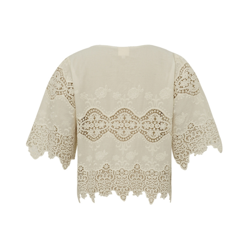 CamiGO Bluse er en sofistikeret og feminin bluse til dame i en kort model, hvor den store, markante blonde skaber et helt særligt og eksklusivt look. En elegant blondebluse, der kombinerer klassisk design med moderne detaljer og giver et raffineret udtryk.