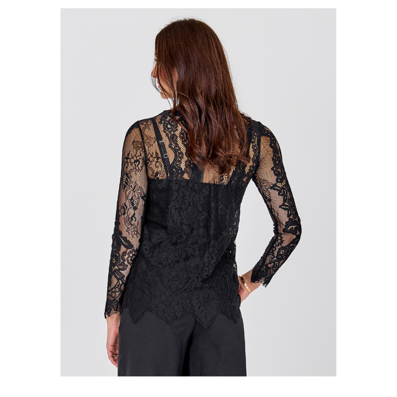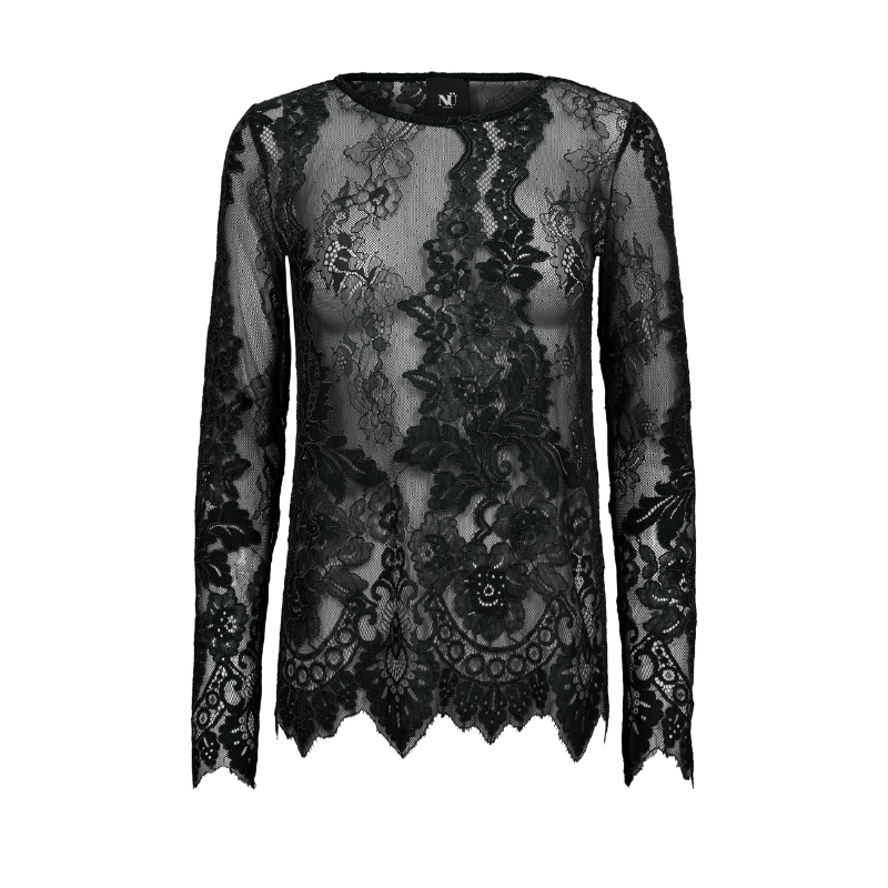 Charlotte Top LS fra NÜ er en smuk blondebluse med et feminint og elegant udtryk. Blusen er med gennemsigtig blonde og et tydeligt blomstret mønster. Det lette materiale giver dybde i looket og fungerer smukt som lag over en enkel top. Kanterne er afsluttet med en let bølget kant, som giver et pænt og gennemført finish. Blusen er behagelig at have på og kan styles både til hverdag og mere festlige anledninger – alene eller under en blazer eller strik. Fås også i creme farvet.