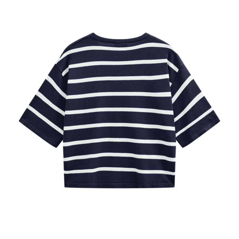 Conny pullover T-shirt fra Freequent i en blød kvalitet med et stribet mønster. Pulloveren er enkel i modellen med en rund halsudskæring samt brede, korte ærmer med drop shoulders, der fremhæver den løse pasform.
