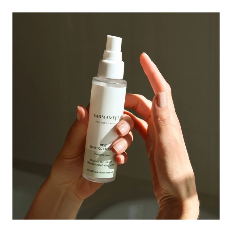 En revitaliserende face mist, der fugter i dybden og styrker hudens barriere – parfumefri, kun med naturens diskrete plantedufte. Formuleret med præ- og postbiotika, som styrker hudens barriere ved at nære hudens mikrobiota – hudens levende økosystem. Dette er essentielt for en sund hud og barriere i harmoni. Tænk på hver spray som mad til din hud.