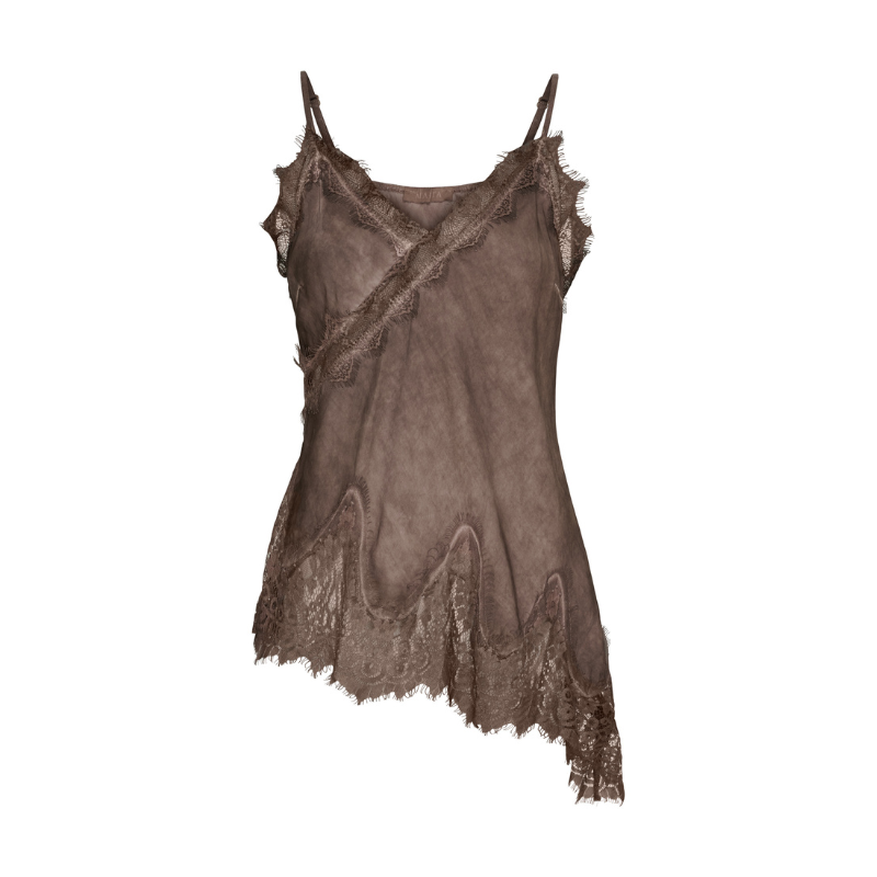 Dream Top fra Marta du Chateau. Elegant og smuk top med blondekant og asymmetrisk bund i en lækker viskose kvalitet.