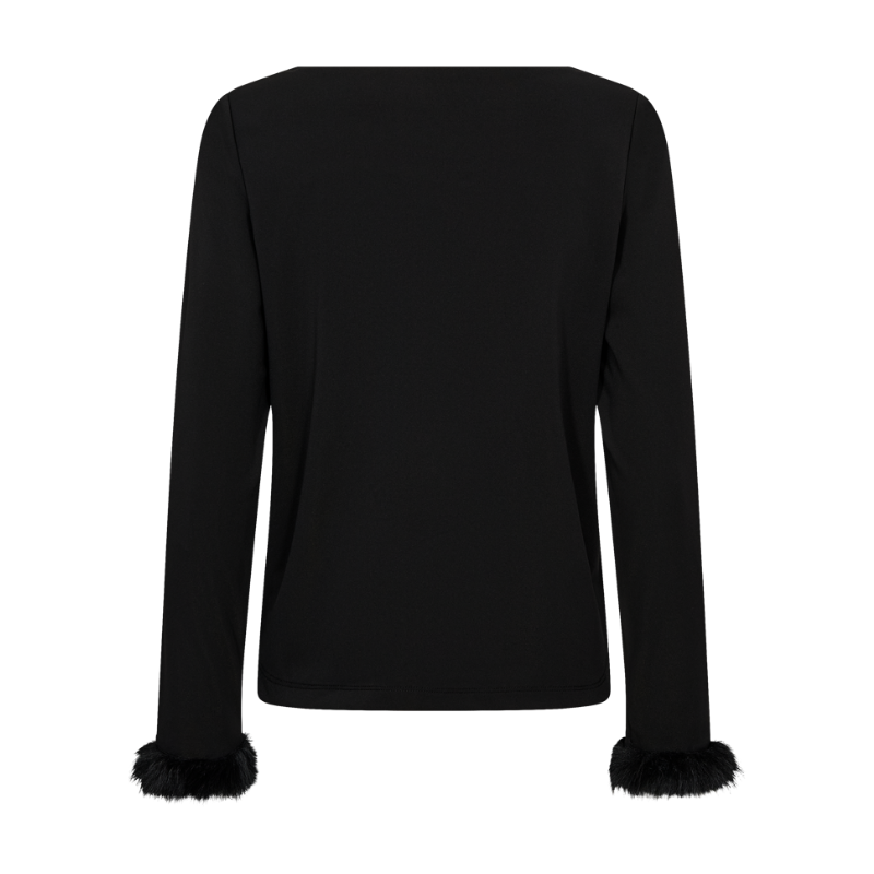 Elva bluse fra Freequent i en strækbar kvalitet. Blusen er enkel i modellen med en elegant bådudskæring og lange ærmer med de fineste fjermanchetter. En detalje, der giver en rigtig flot effekt.
