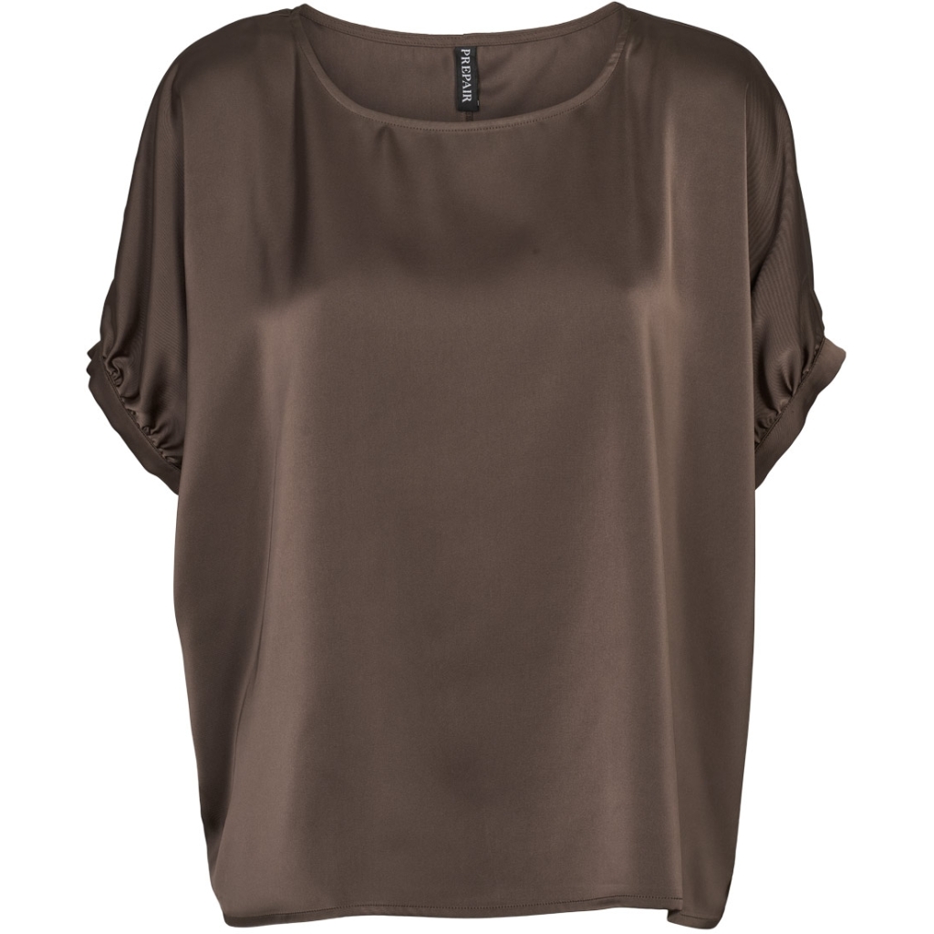 Emily Blusen fra Prepair har et enkelt og elegant udtryk med en blød, rund halsudskæring. Blusen er designet med korte ærmer, der er let rynkede og afsluttet med et lille opslag, hvilket giver et feminint og afslappet look. Pasformen er løs og behagelig med et smukt fald, som gør den let og luftig at have på. Stoffet har en glat overflade, der tilfører blusen et eksklusivt udtryk.
