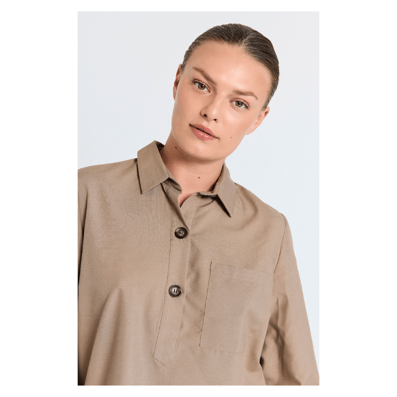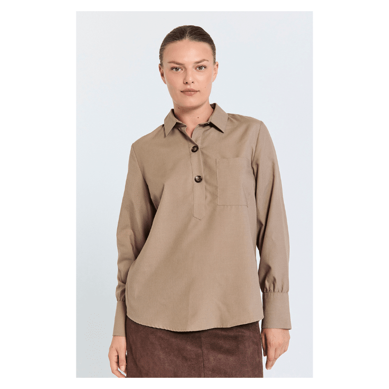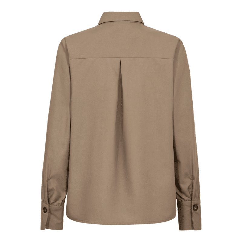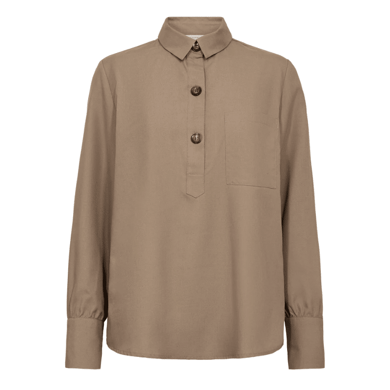 Flynn skjorte fra Freequent i en smuk kvalitet. Skjorten er enkel i modellen med en løs pasform, knaplukning, krave, en enkelt brystlomme samt lange ærmer med brede manchetter, der giver en flot effekt.