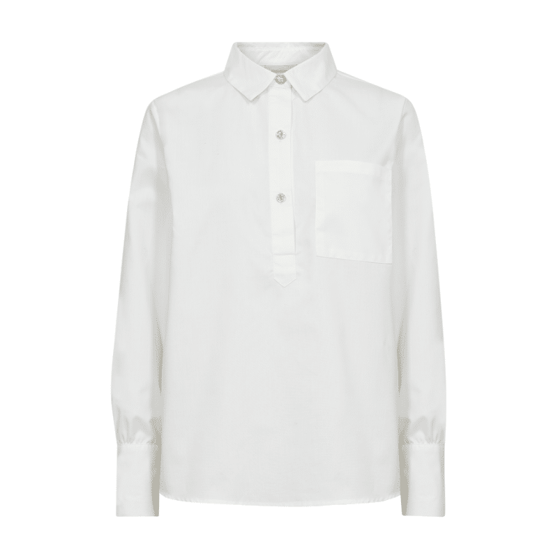 Flynn skjorte fra Freequent i en blød kvalitet. Skjorten har lange ærmer med en høj cuff, en enkelt brystlomme, box pleat på ryggen, en løs pasform samt elegante knapper med små similisten på brystet. Fås også i lyseblå.