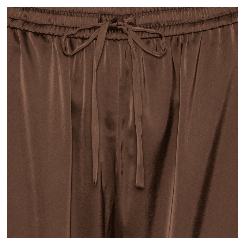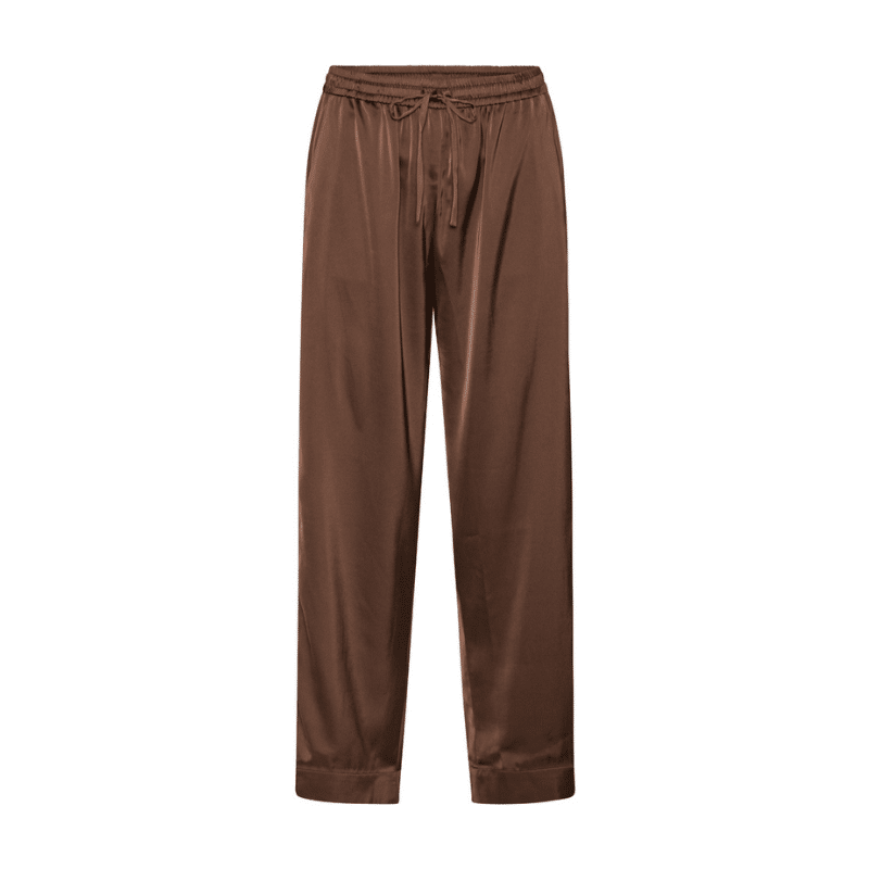 Bukser i “track-pants”-stil lavet i et elegant, tykt satinmateriale. Bukserne har brede ben, to sidelommer og elastik og bindebånd i taljen. Garcia-bukserne kan kombineres med både høje hæle eller flade sko, hvilket gør dem nemme at dresse op eller ned.