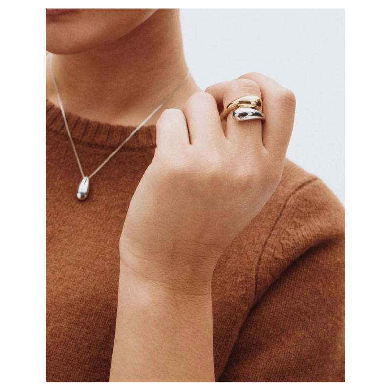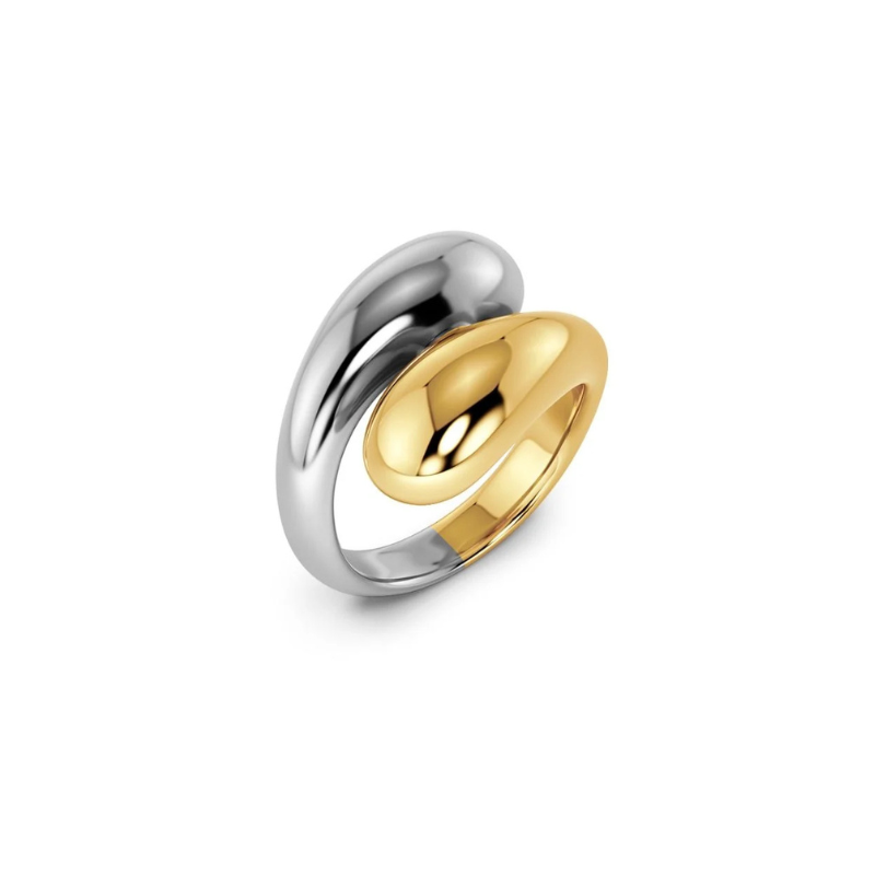 Harmony ring fra Edblad er en tidløs dråbeform i blandede metaller, der mødes i en perfekt harmoni.  Den smukke ring sidder godt på fingeren og mikser en 14K guldbelægning med blankt rustfrit stål, som Ying og Yang.