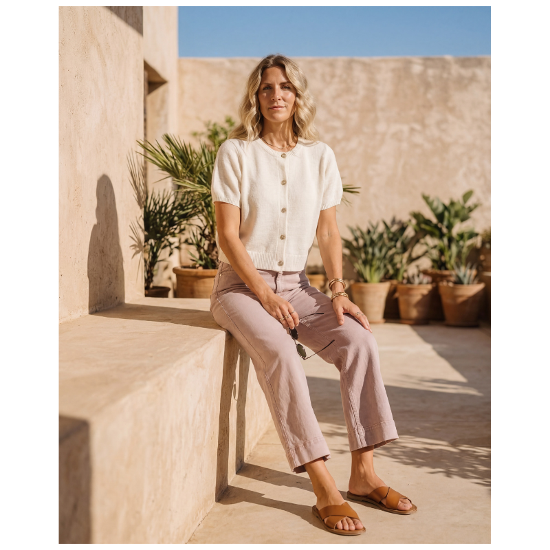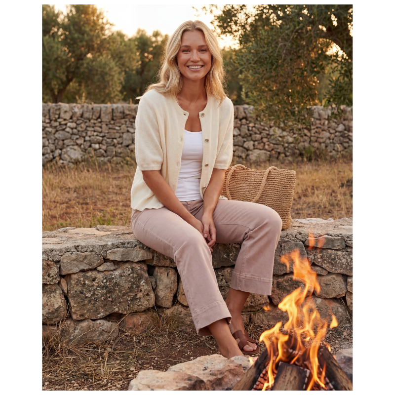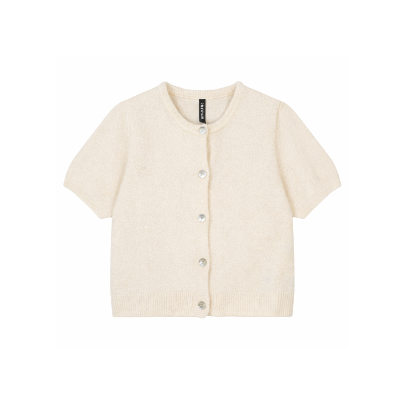 Hyacinth Knit Cardigan fra Prepair er en blød og feminin strikcardigan. Den fine kvalitet giver en lethed. Cardiganen har en klassisk rund halsudskæring og gennemgående knaplukning foran med små, elegante knapper. De korte ærmer og den let cropped længde giver et let look. Ribkanter ved hals, ærmer og bund giver den sidste fine detalje. Fås i flere farver.