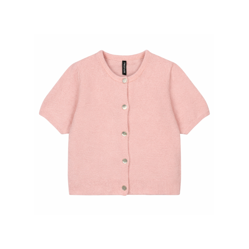 Hyacinth Knit Cardigan fra Prepair er en blød og feminin strikcardigan. Den fine kvalitet giver en lethed. Cardiganen har en klassisk rund halsudskæring og gennemgående knaplukning foran med små, elegante knapper. De korte ærmer og den let cropped længde giver et let look. Ribkanter ved hals, ærmer og bund giver den sidste fine detalje. Fås i flere farver.