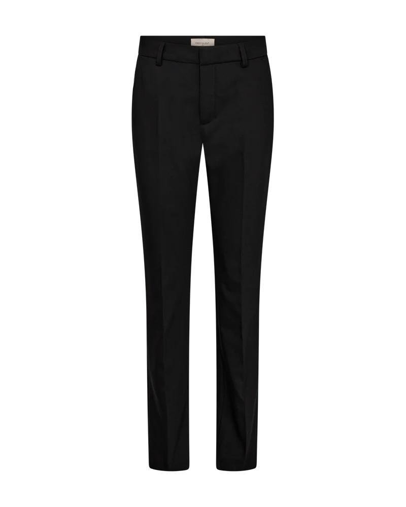Isadora bootcut bukser i sort fra Freequent i en blød kvalitet. Bukserne er enkle i modellen med hægte- og lynlåslukning, sidelommer, en høj talje samt pressefolder i benene. Et par klassiske bukser i en lækker kvalitet.