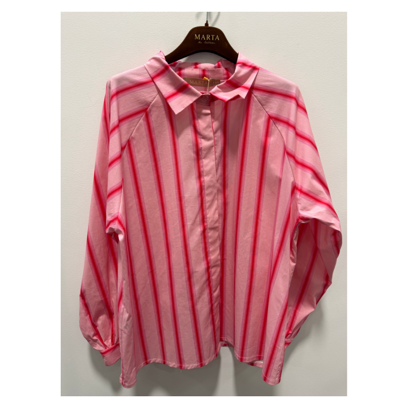 Kalia skjorte fra Marta er en smuk skjorte med lyserøde og røde striber.