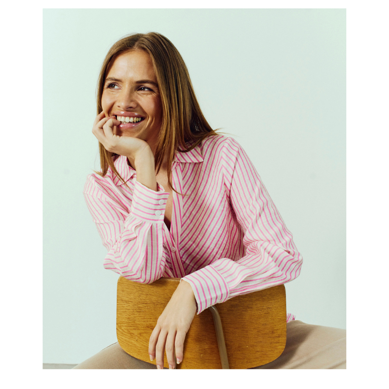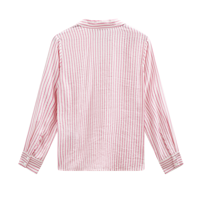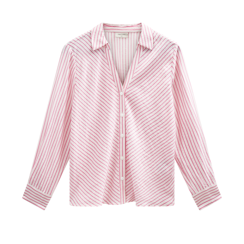 Kimmi skjorte fra Freequent i en let kvalitet med et stribet print i pink. Skjorten har lange ærmer med manchetter, V-udskæring med kravekant, knaplukning på fronten samt en elegant, løs pasform.