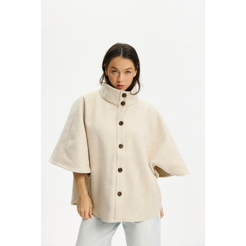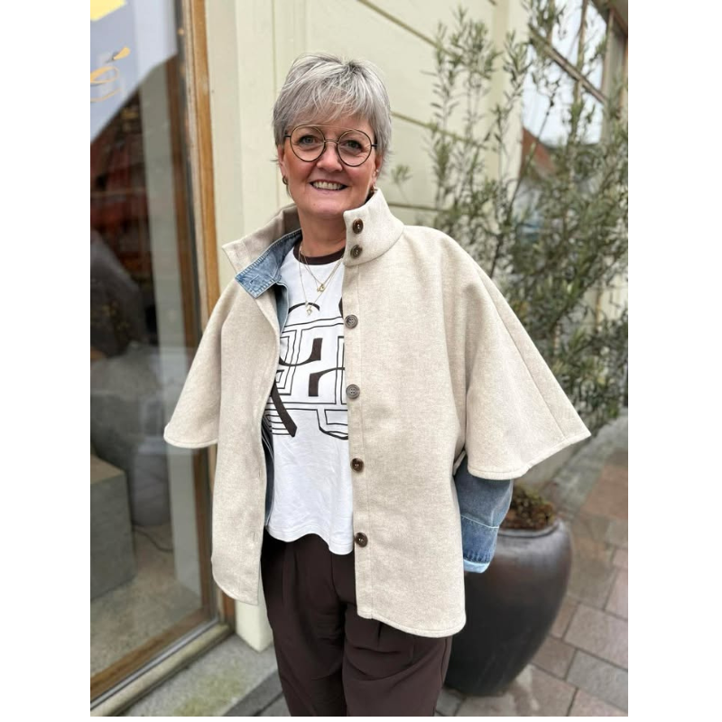 Isla Poncho fra Kopenhaken er den perfekte poncho til et hvert outfit. Ponchoen har et fedt udtryk med flotte knapper hele vejen ned, og en lille brodering i nakken.