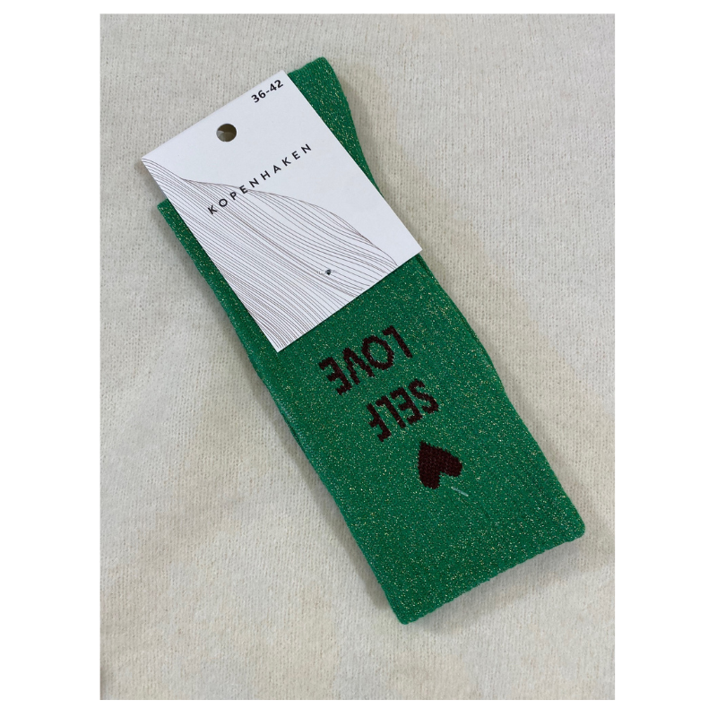 Socks lurex wording fra Kopenhaken. Et par bløde flotte sokker med glimmer og ord på.
