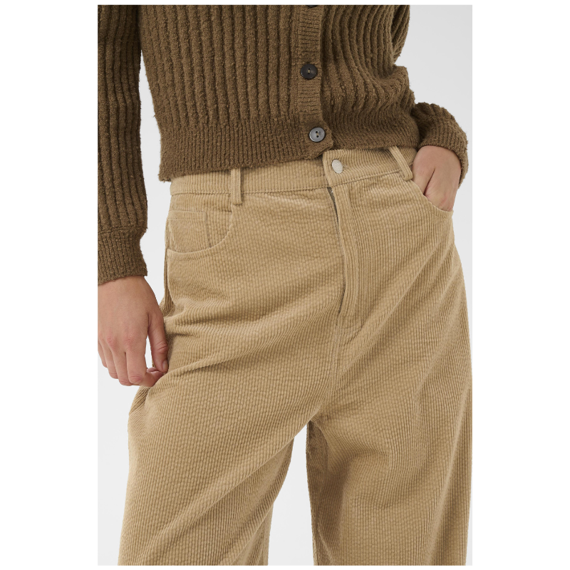 Lauven buks fra Soaked i en blød ribstrikket fløjlskvalitet. Bukserne er simple i modellen med en høj talje og brede ben.
