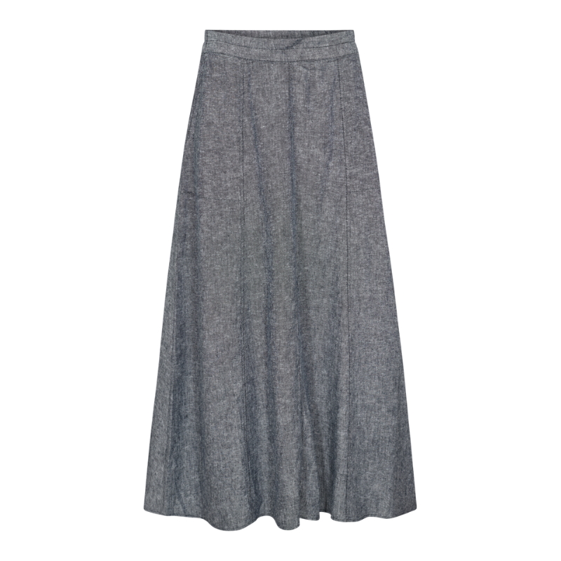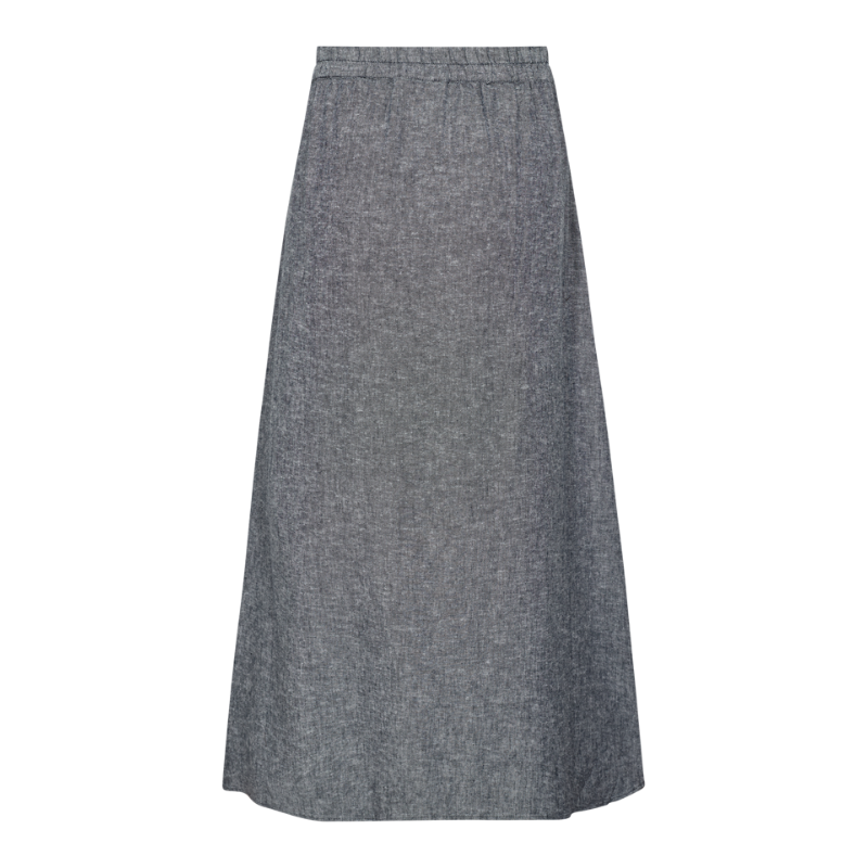 Lava nederdel fra Freequent i en skøn hørblanding. En lang nederdel med vidde i skørtet og elastik bagpå som sikrer en god pasform. Derudover har nederdelen sidelommer, et slids foran og diskrete læg .