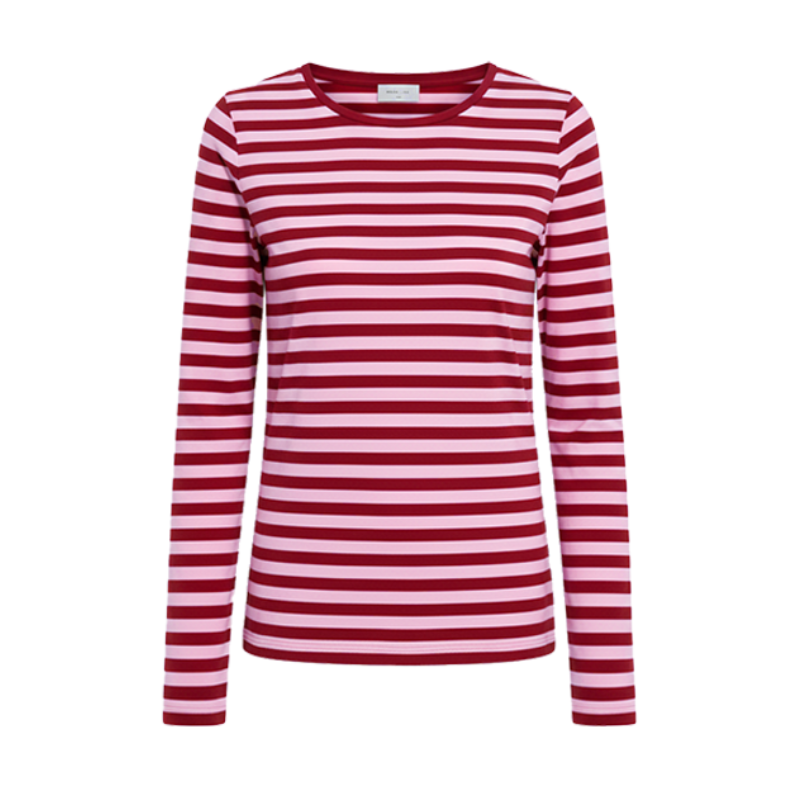 Liana langærmet t-shirt fra Freequent i en blød kvalitet med kontraststriber. Derudover er t-shirten enkel i modellen med rib i den runde halsudskæring samt en smal pasform.