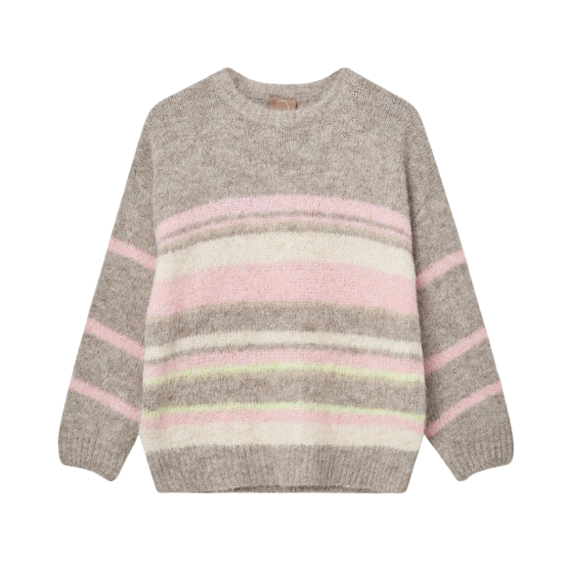 Lily o-neck strik fra KOPENHAKEN. En skøn blød strik med striber i rosa.