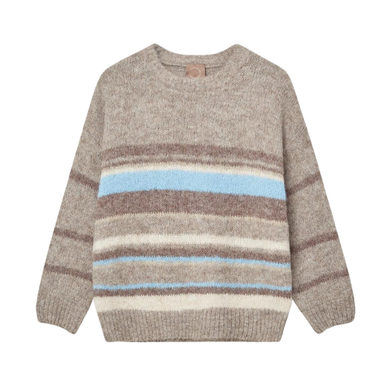 Lily o-neck strik fra KOPENHAKEN. En skøn blød strik med striber i blå og brun.