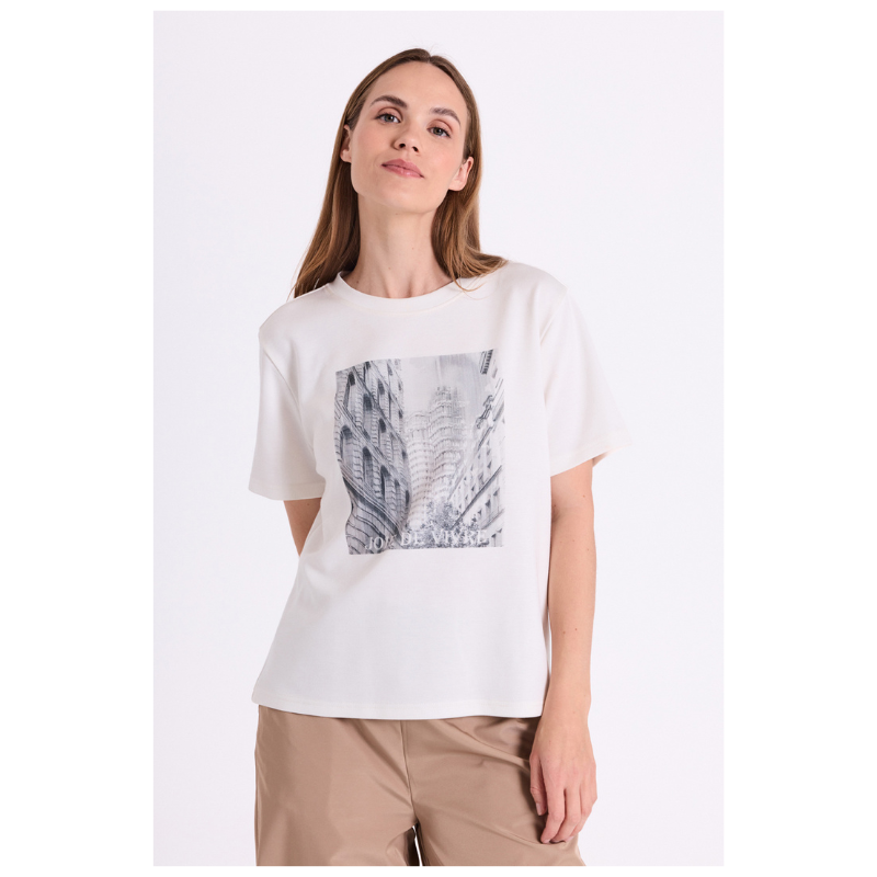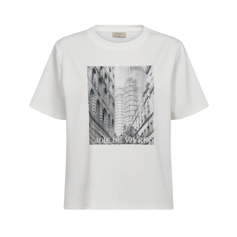 Malak Tee fra Freequent er en skøn hvid  t-shirt med et fedt print i en blød kvalitet.