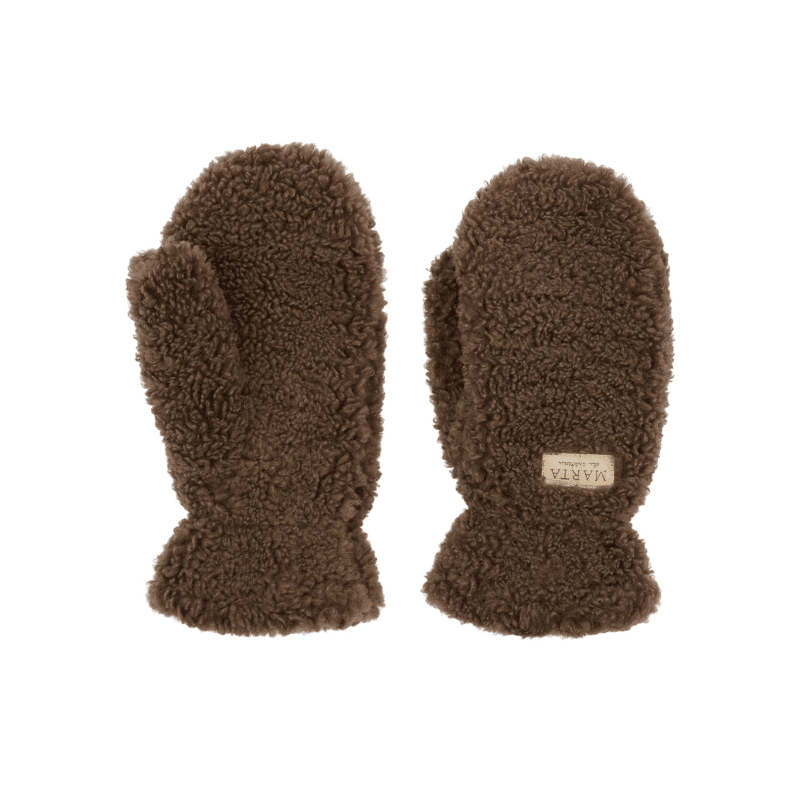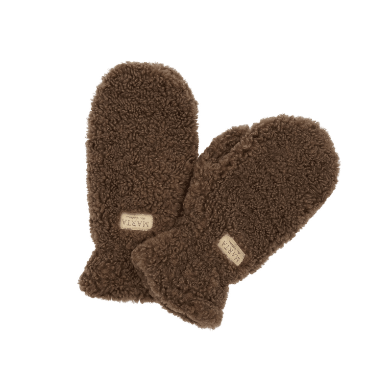 Marta brune teddy vanter fra Marta du Chateau. Skønne bløde teddy vanter i sand med Marta logo.