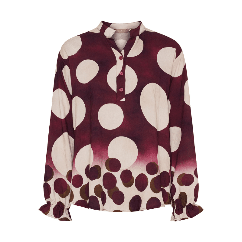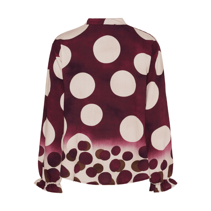 Mdc Aspen skjorte fra Marta du Chateau. En smuk skjorte med et grafisk udtryk med prikker. Findes i brun og bordeaux.