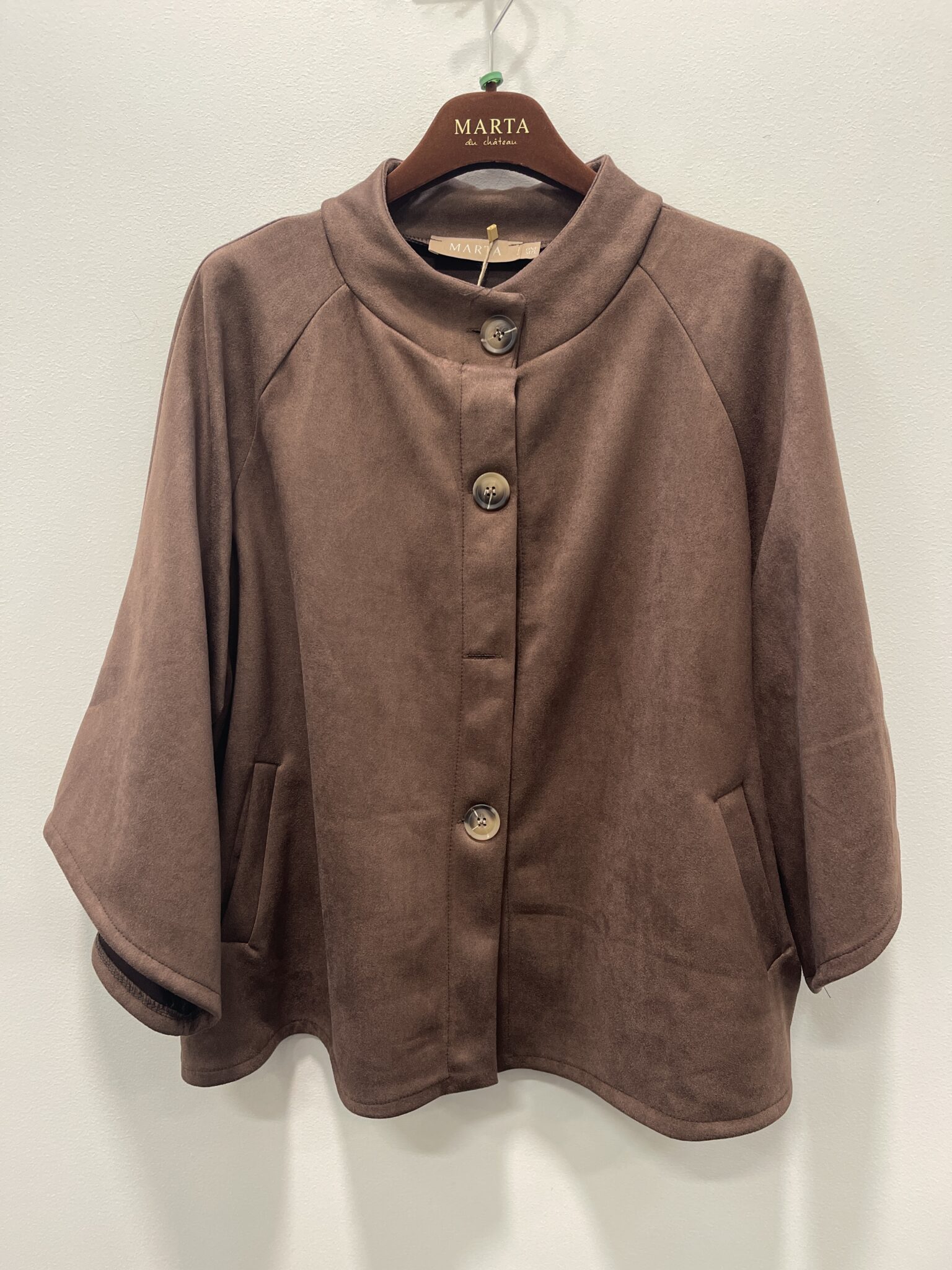 Mdc Britta jakke fra Marta du Chateau. Lækker kappe-jakke i blødt vaskeskinds look.