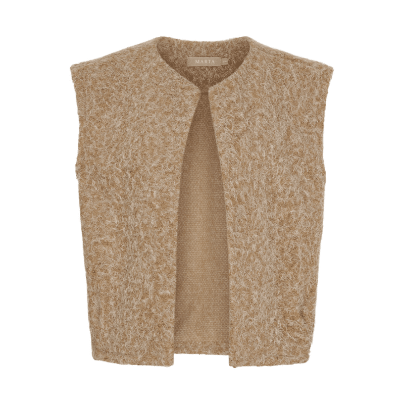 Super fin vest fra Marta du Château. Vesten er ærmeløs og åben foran. Perfekt til udover en strik eller langærmet bluse.