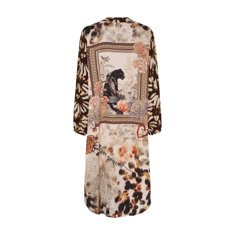 Mdc Eugenia kjole fra Marta du Chateau i et smukt print og med et unikt dyreprint på ryggen.