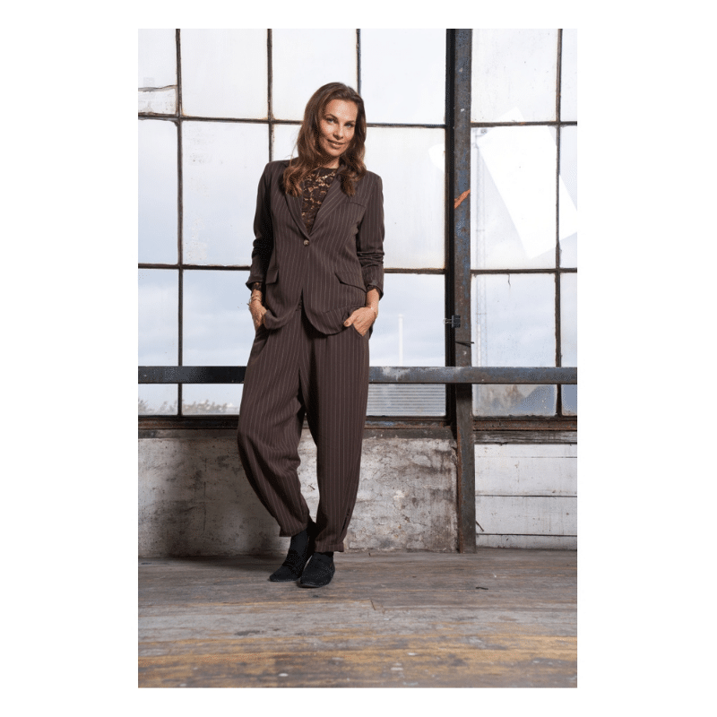 Mdc Kenzie stribet buks fra Marta du Chateau. Lækker nålestribet buks med elastik i taljen og indsnit ved buksebenet.