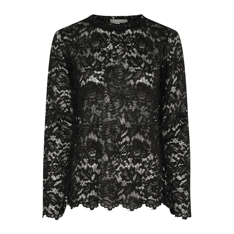 Elegant langærmet blonde bluse fra Marta du Château. Blusen har lange ærmer og rund hals. Style den med en nederdel eller et par bukser for et sofistikeret look. Findes i sort, creme og brun.