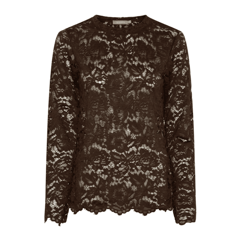 Elegant langærmet blonde bluse fra Marta du Château. Blusen har lange ærmer og rund hals. Style den med en nederdel eller et par bukser for et sofistikeret look. Findes i sort, creme og brun.