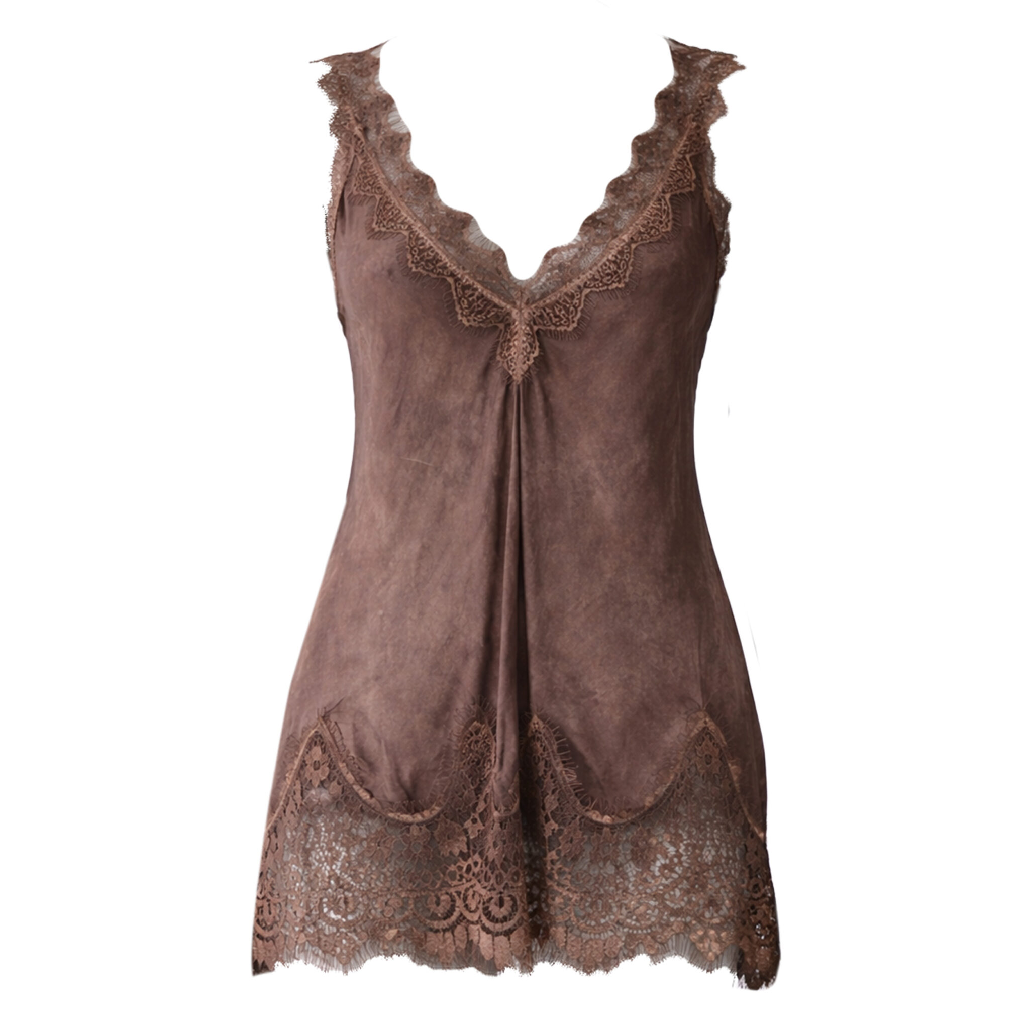 Feminin top i en farve nuance med smukke blondekanter ved hals og kant. Designet med V-udskæring og let A-form, der giver en flatterende pasform. Det bløde materiale falder elegant, mens de fine blondedetaljer tilfører et eksklusivt og romantisk udtryk-perfekt både alene eller under en blazer eller cardigan.