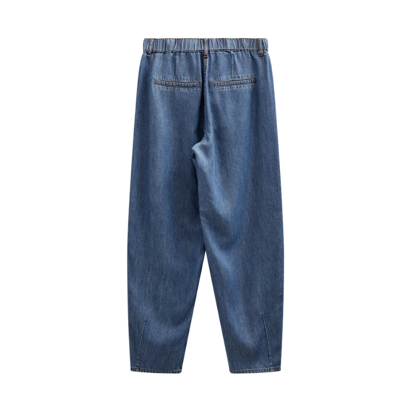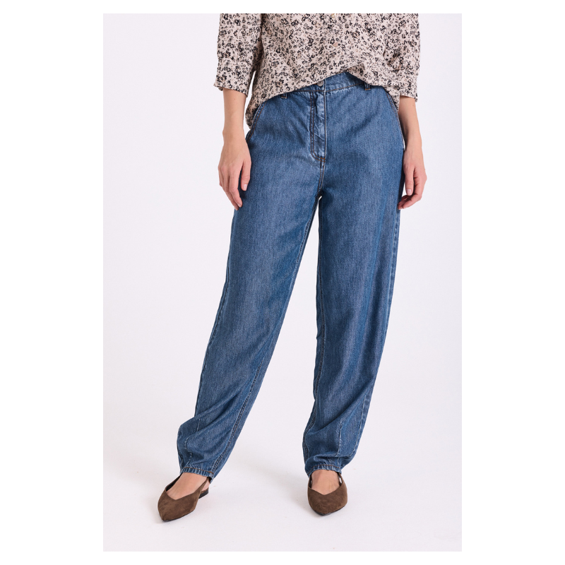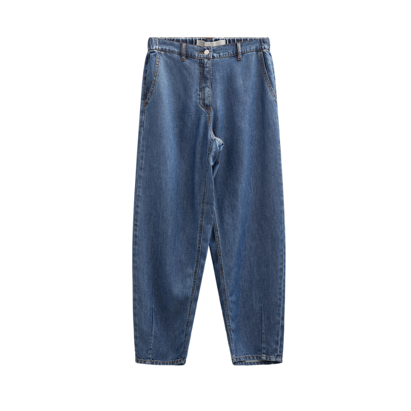 Milo Bukser fra Freequent i en let denimkvalitet. Bukserne er enkle i modellen med knap- og lynlåslukning, elastik i taljen, lommer samt tapered fit.