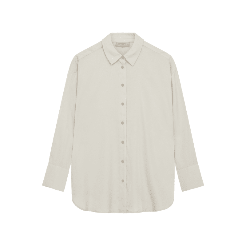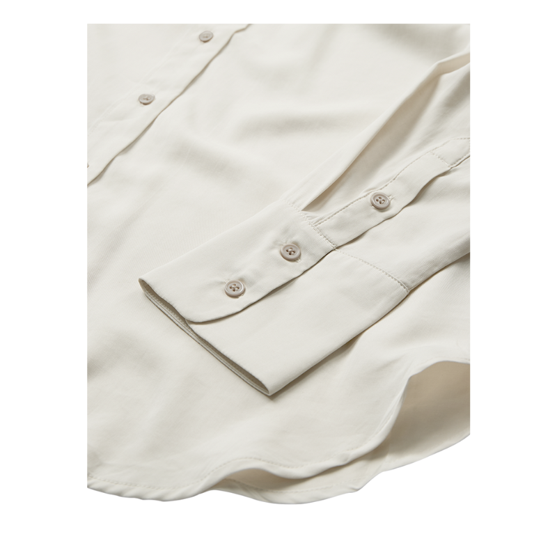 Mondo beige Skjorte fra Freequent i en blød kvalitet. Skjorten er enkel i modellen med knaplukning på fronten, en afrundet bundkant samt lange ærmer med en høj cuff og drop shoulders, der fremhæver den løse pasform.