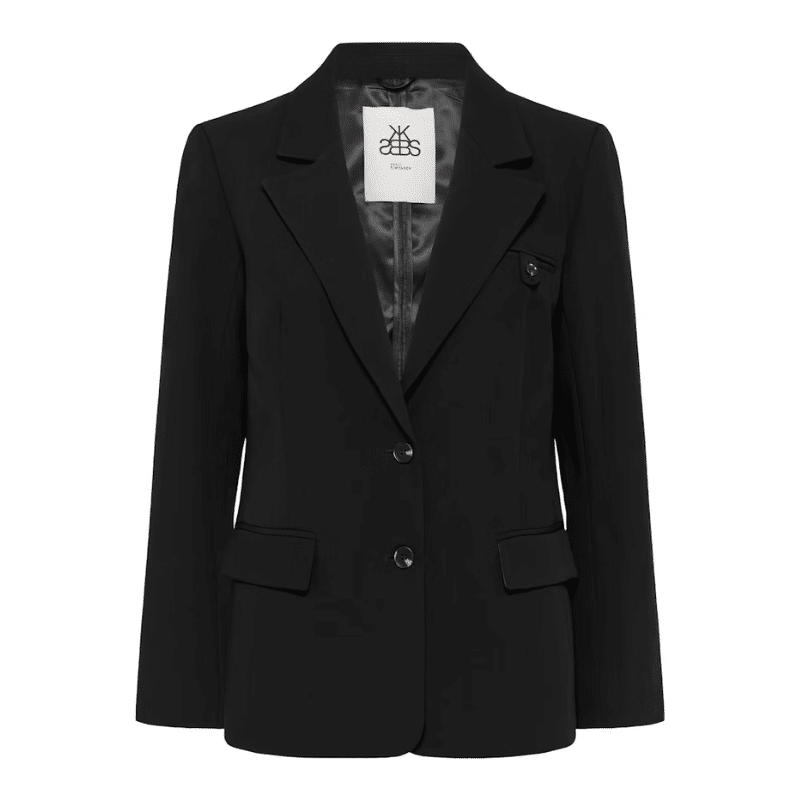 Blazer med skræddersyet pasform, reverskrave og knaplukning. Designet med let markerede skuldre samt forlommer og brystlomme, hvilket giver et klassisk udtryk, der fungerer både til hverdag og over en kjole til fest.