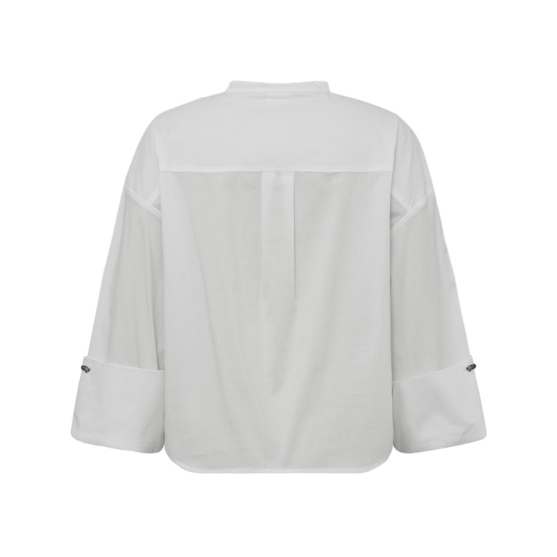 Elegant bluse med en smuk detalje ved skulderen og dejlige, brede manchetter, der giver et eksklusivt udtryk. Den organiske sølvknap tilføjer et ekstra lille touch til designet og fuldender det sofistikerede look.